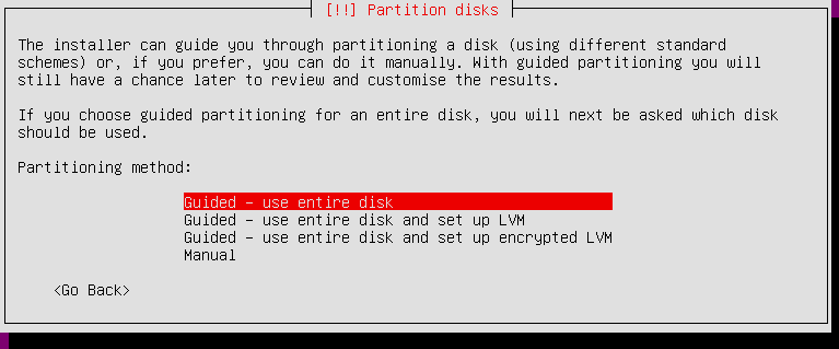 It will say that it will use the entire disk sda, which is about 8.6GB and is an "ATA VBOX HARDDISK"